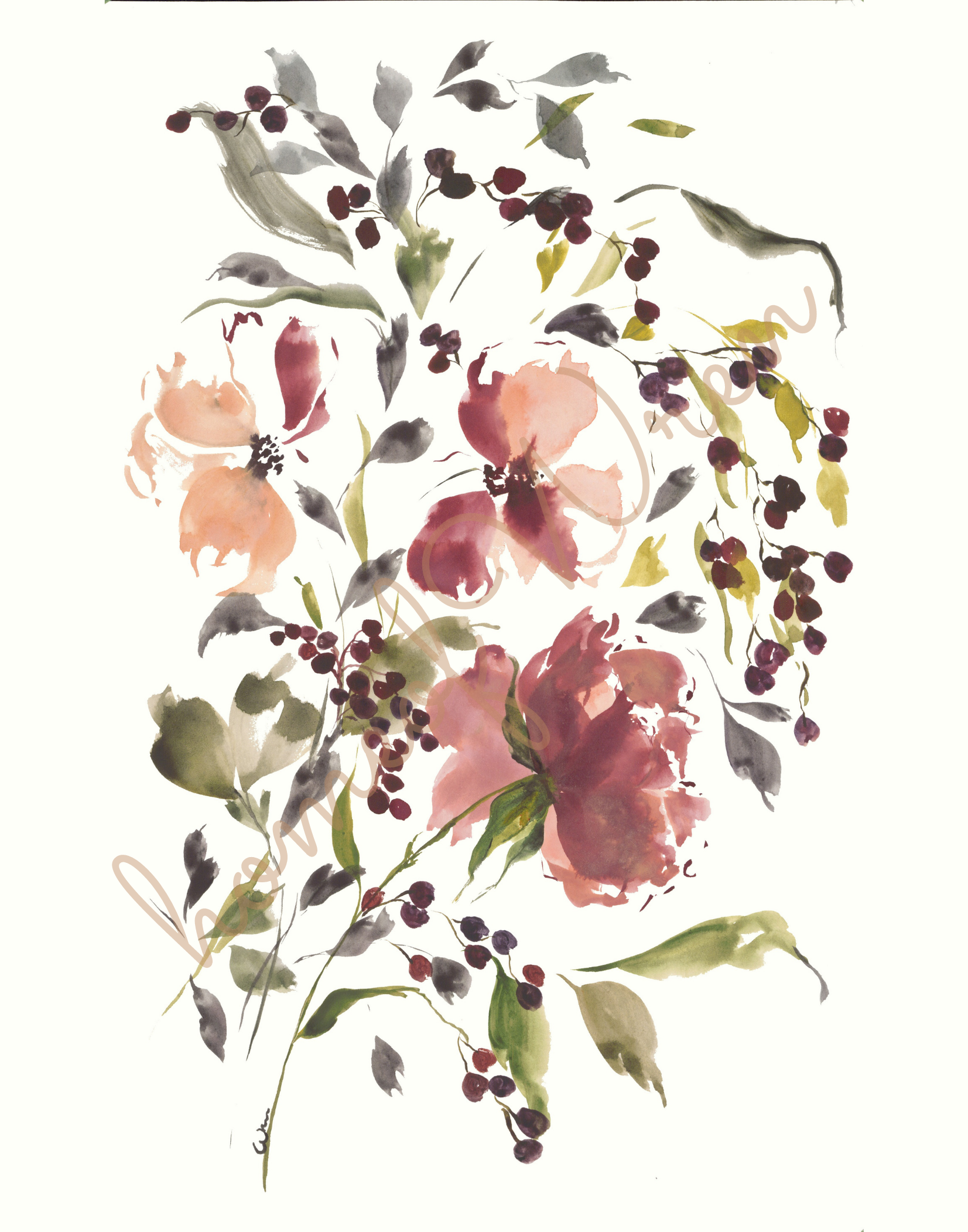 Painted in colors of burgundy, peach, and green, Whispers in the Morning represents answering to the call of purpose.